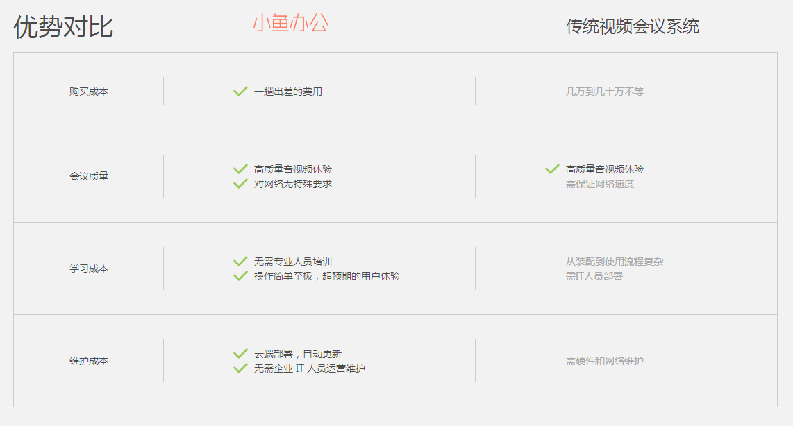 宋大房之前打聽到,鋪設(shè)一個遠程會議室,需要投入將近8萬塊錢的費用,但是使用小魚辦公布置一個會議室才5000多塊錢,并且能夠達到非常好的實時遠程會議效果,滿足所有視頻會議室的日常功能,大大縮減了公司在這方面的開支。