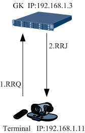 如果另一個(gè)終端192.168.1.11也使用號(hào)碼0512331向GK(192.168.1.3)注冊(cè),則因該號(hào)碼已注冊(cè),GK回復(fù)RRJ,拒絕注冊(cè)。