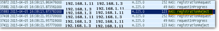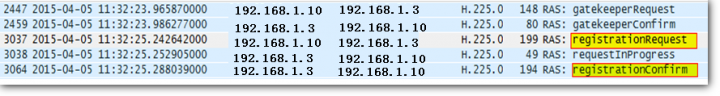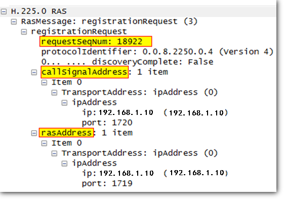 在RRQ消息中,可以捕捉到終端的呼叫系列號(hào)、接收呼叫信令地址、接收RAS信令地址等信息。