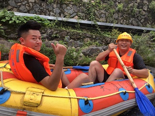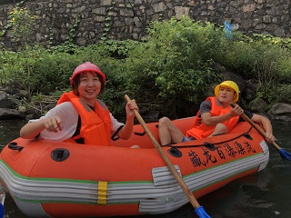 本次我們出發(fā)的目的地是浙江安吉。第一站來到安吉大溪漂流。漂流沿途曲折迂回,漂流道兩岸林蔭遮天,怪石嶙峋。雖然天氣有些微涼,山泉水冰涼刺骨,但是小伙伴玩的不亦樂乎。漂流中大家兩兩結(jié)伴,互相配合,爭先恐后,在玩耍中增加對彼此的了解,拉近距離,相信之后的工作配合會更加的默契。