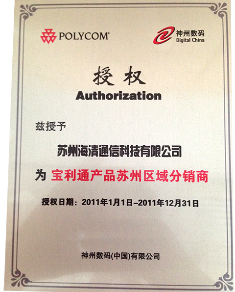 首頁 » 海清通信資訊中心 » 海清動態(tài) » 神州數(shù)碼授權海清通信為“寶利通產(chǎn)品蘇州區(qū)域分銷商”