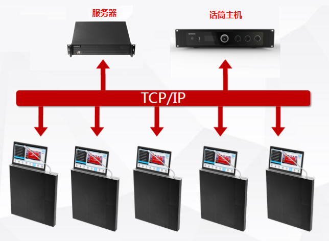 采用標(biāo)準(zhǔn)以太網(wǎng)(千兆網(wǎng))技術(shù),通過(guò)一條網(wǎng)線或WIFI使得每個(gè)會(huì)議終端和智能會(huì)議流媒體服務(wù)器鏈接。軟件系統(tǒng)采用終端—主控模式,所有的文件都放在智能會(huì)議流媒體服務(wù)器上,管理員可以事先把文件發(fā)布到每個(gè)座位的會(huì)議終端機(jī)上,參會(huì)人員通過(guò)會(huì)議終端無(wú)需用鼠標(biāo)鍵盤(pán),使用終端觸摸屏進(jìn)行各項(xiàng)會(huì)議操作。