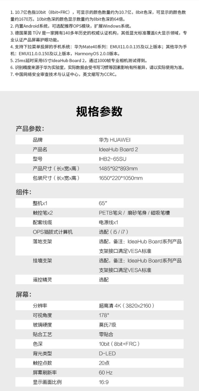 華為IdeaHub Board2智能協(xié)作視頻會議平板一體機教育培訓投屏電子白板觸摸大屏