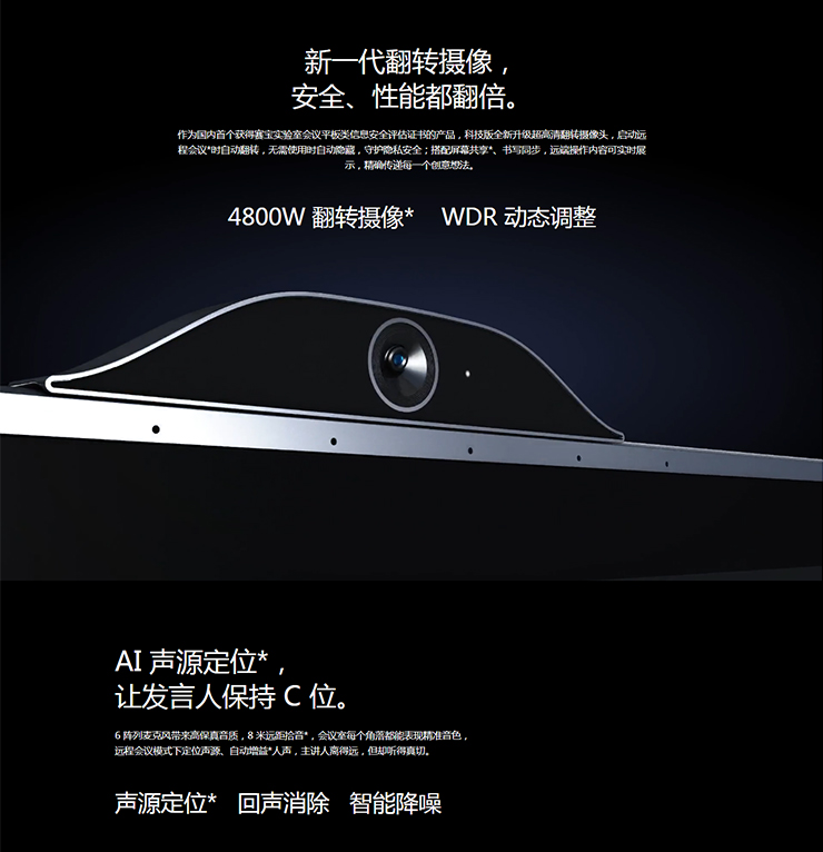 作為國(guó)內(nèi)首個(gè)獲得賽寶實(shí)驗(yàn)室會(huì)議平板類信息安全評(píng)估證書的產(chǎn)品,科技版全新升級(jí)超高清翻轉(zhuǎn)攝像頭,啟動(dòng)遠(yuǎn)